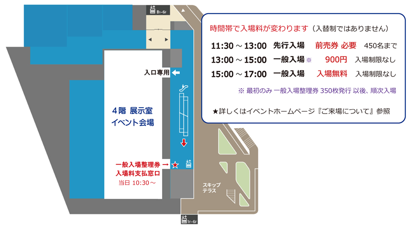 ④入場料支払い窓口は出口側〔星印の場所〕 ※15:00以降は無料